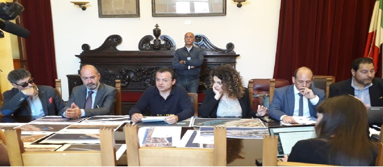 Il sindaco Cateno De Luca, il vicesindaco Salvatore Mondello e l’assessore con delega ai Finanziamenti Europei Carlotta Previti, insieme ai tecnici progettisti, hanno presentato oggi, nel corso di una conferenza stampa a Palazzo Zanca, il piano Riparo Pesca a Ganzirri da finanziare nell’ambito del bando Pesca misura 1.43 PO FEAMP 2014-2020.