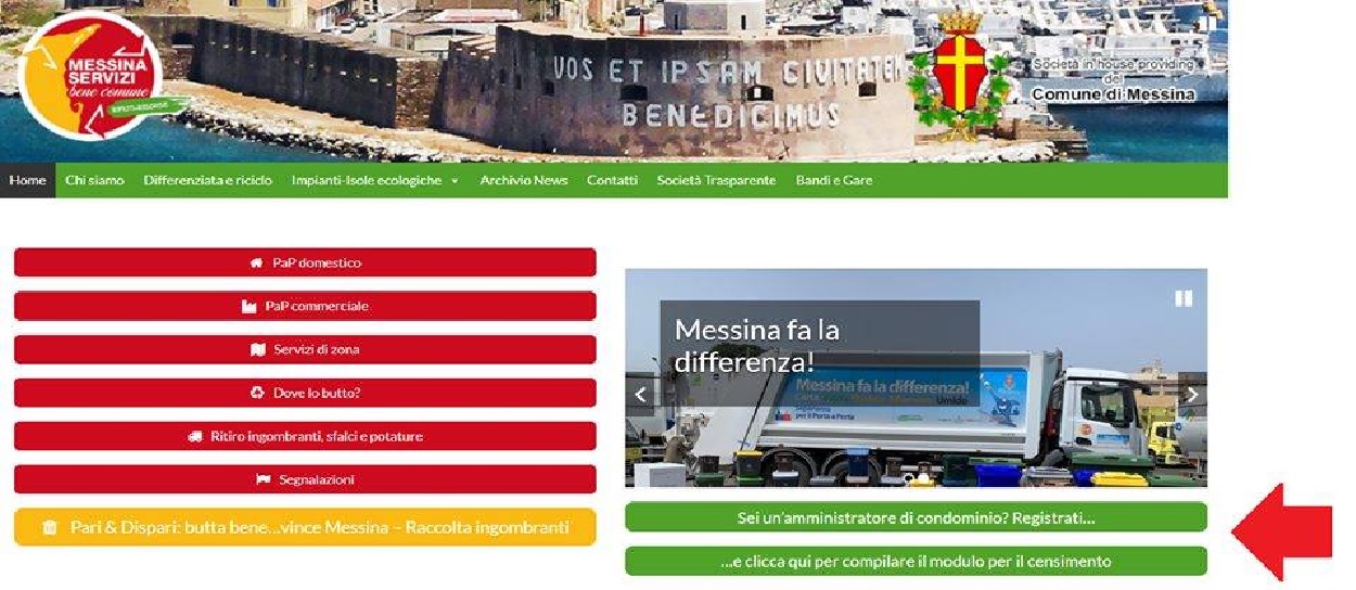 Continua il censimento dei condomini di Messina per l’avvio del prossimo servizio di raccolta differenziata porta a porta e per la successiva consegna dei contenitori. Messinaservizi Bene Comune ha istituito una procedura semplificata con la quale i capo condomini dovranno inoltrare i dati dei condomini da loro amministrati. L’unico modo per inserire le informazioni è farlo direttamente sul sito www.messinaservizibenecomune.it. in modo semplice e veloce registrandosi ed inserendo le sole informazioni richieste. Tutte le altre modalità non verranno prese in considerazione. Messinaservizi farà pervenire poi via mail ai singoli amministratori una ricevuta. Coloro che hanno già presentato i dati in modo tradizionale, attraverso documentazione cartacea, non dovranno più ripresentarli.