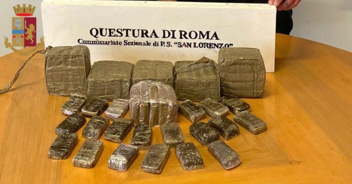 Il primo a finire in manette è un cittadino romeno I.V.F. di 40 anni in Italia senza fissa dimora. Lo straniero è stato notato in via Rocca Cencia dagli agenti della Sezione Volanti, diretta da Massimo Improta, dove, alla vista della volante, cercava di occultare un sacchetto in plastica trasparente. L’uomo, recentemente arrestato per reati inerenti gli stupefacenti, ha insospettito i poliziotti che hanno deciso di procedere ad un controllo. Nel sacchetto nascondeva 27 involucri contenenti hashish per un peso di circa 33 grammi.