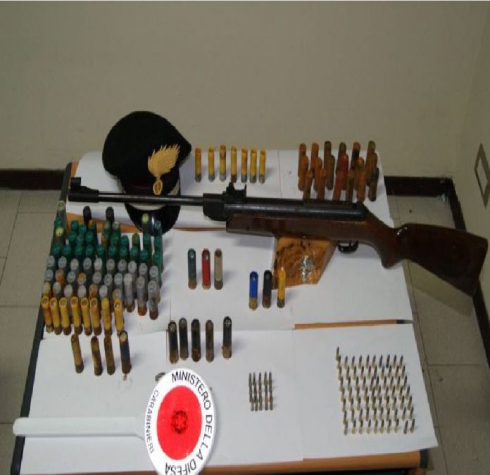 “Sono state svolte perquisizioni in alcuni casolari che hanno permesso di rinvenire, a casa di M.G., 42enne incensurato, 127 cartucce per fucile calibro 12 di varie marche, 91 cartucce per pistola calibro 22 ed una carabina ad aria compressa, di libera vendita, che è risultata però essere provento di un furto consumato a novembre 2017 in un esercizio commerciale della zona”.