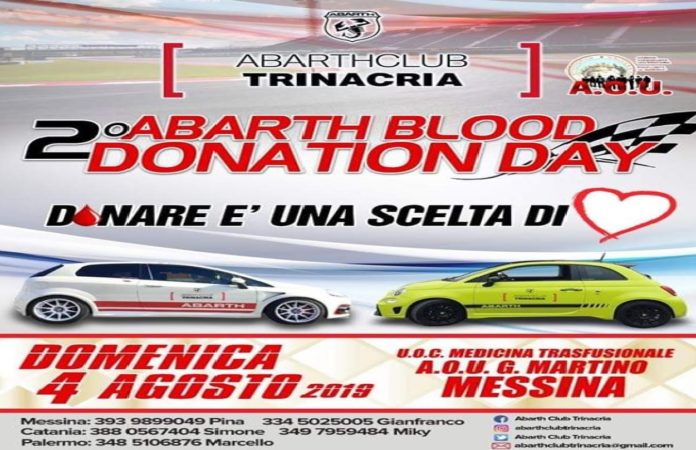 Scrivono così dall’Abarth Club Trinacria, per ricordare un evento che si terrà il 4 agosto al Policlinico Universitario di Messina intorno alle 9: “la donazione è un atto volontario, gratuito che impegna veramente poco il donatore, ma ha un altissimo valore morale ed umano. Esistono numerose malattie che per essere combattute necessitano di emazie concentrate o plasma o piastrine. Tantissime persone, uomini e donne, adulti bambini e neonati per vivere o sopravvivere hanno bisogno di fare trasfusioni, una volta sola o periodicamente durante la loro vita. ️Donare il sangue è davvero un atto eroico nella sua semplicità. Avvicinarsi alla donazione è il momento più difficile, ma posso assicuravi che è davvero semplice. Chiunque abbia compiuto 18 anni e goda di buona salute può ️donare il sangue. Pochissime sono le persone che non possono donarlo”.