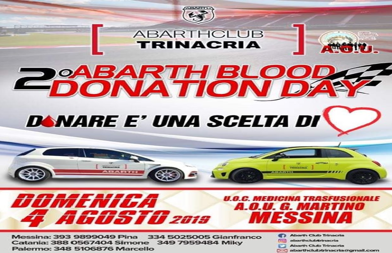 “Anche quest’anno, per rispondere alla grave carenza di sangue che si registra soprattutto nei mesi estivi nella nostra città di Messina, unitamente all’A.O.U. “G. Martino” rinnoviamo l’appuntamento di solidarietà -2° Abarth Blood donation day: donare è una scelta di cuore-. La manifestazione si terrà domenica prossima vivrà il suo momento centrale quando i soci del sodalizio arriveranno con le loro splendide auto alla struttura Universitaria ed effettueranno il proprio gesto solidale. Si tratta di un’ìdea lanciata qualche anno fa dalla dott.ssa Pina Quartarone, dirigente medico del Reparto di Terapia Intensiva Neonatale e Pediatrica del Policlinico e presidente dell’Abarth Club Trinacria, condivisa dal direttore della U.O.C. di Medicina Trasfusionale prof. Andrea Alonci e pienamente supportata, per il secondo anno consecutivo, dalla Direzione Generale dell’A.O.U.. Come avvenuto in passato, quindi, i soci del Club provenienti da tutta la Sicilia, sensibili alla problematica della cronica carenza di plasma, si riuniranno con un unico fine… donare solidarietà, sangue e vita! Un vero e proprio corteo di Abarth si snoderà, con partenza da via Garibaldi alle 8.30, per le strade cittadine per giungere dopo circa mezz’ora al Presidio ospedaliero di via Consolare Valeria.