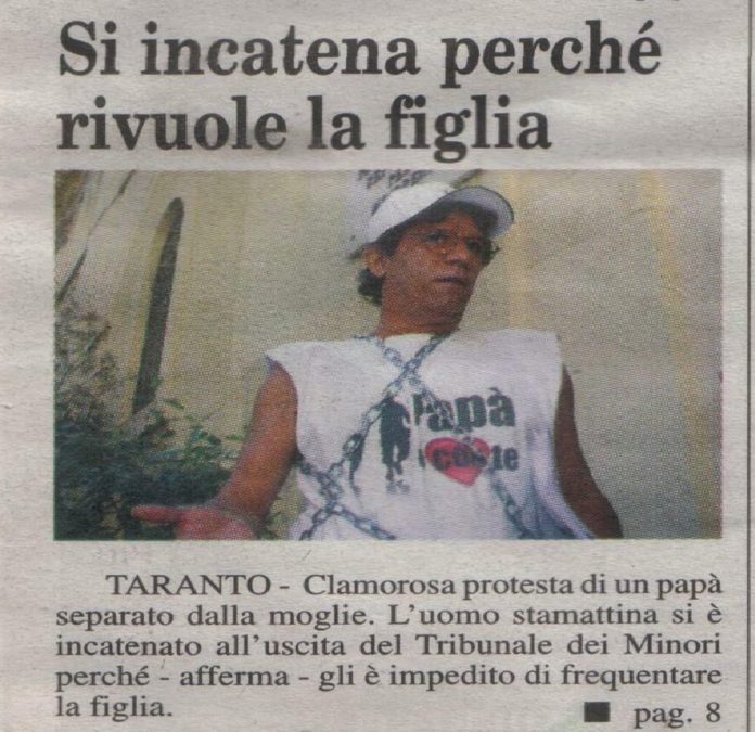 Mi sono incatenato, davanti al Tribunale dei minori di Taranto. In giro c’era casino e movimento… mi si avvicinò una signora in borghese e con tono minaccioso mi disse: “quì non puoi stare, te ne devi andare da quì”.