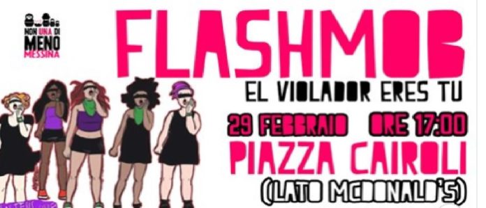 Si terrà alle 17:00 di oggi pomeriggio, in Piazza Cairoli (lato Mcdonald’s), il flashmob “El violador eres tu“, promosso da Non una di meno Messina.