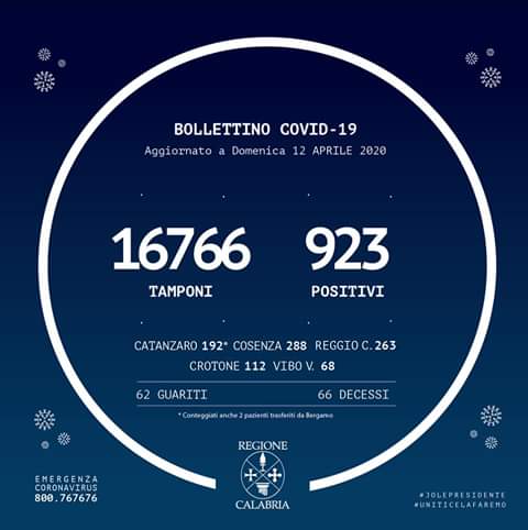 Nel conteggio sono compresi anche i due pazienti di Bergamo trasferiti a Catanzaro, mentre non sono compresi i numeri del contagio pervenuti dopo la comunicazione dei dati alla #ProtezioneCivileNazionale. #jolepresidente #regionecalabria.