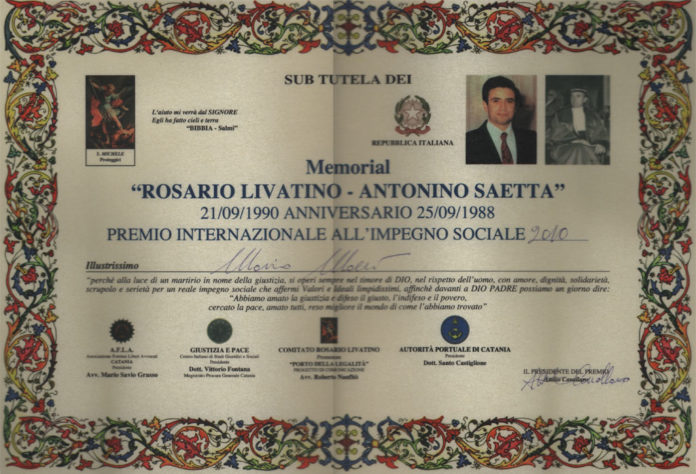 Enzo Gallo, di Canicattì, sul “Premio Livatino, in una sua nota afferma: “salve mi chiamo Enzo Gallo e sono di Canicattì.