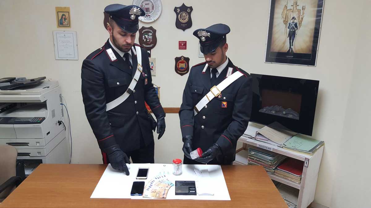 Infatti in Gaggi, i militari della Stazione carabinieri di Graniti a seguito di servizio di osservazione, hanno tratto in arresto per detenzione ai fini di spaccio di sostanza stupefacente del tipo cocaina e marijuana, C.G.M. classe ’99, già attenzionato da tempo anche dai Carabinieri dell’Aliquota Operativa di Taormina. In particolare, durante un posto di controllo il soggetto veniva sottoposto a perquisizione personale e veicolare. La successiva perquisizione domiciliare permetteva di rinvenire 20 grammi circa di marijuana, 3 grammi circa di cocaina, un bilancino di precisione e diverse banconote di vari tagli, frutto dell’attività illecita dell’uomo. Il giovane pusher espletate formalità di rito è stato tradotto presso il proprio domicilio in regime di arresti domiciliari ed in attesa di essere giudicato con rito direttissimo innanzi alla competente Autorità Giudiziaria di Messina. Nello stesso contesto i Carabinieri hanno deferito altri due soggetti, trovati in possesso di modiche quantità di sostanza stupefacente.