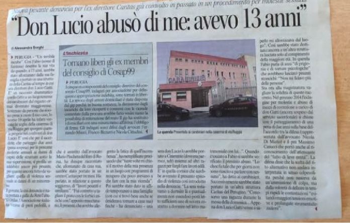 Claudia Stefanelli, di Torgiano in Provincia di Perugia, porta sempre con sè il ricordo pesante di quel che le accade in passato e scrive: “don Lucio Gatti, non mi sono dimenticata di te… la tua libertà è la prigione dei tanti ragazzi… bambini… che tu abusavi… hai interrotto… preso le loro vite… mai una parola di scuse… chi doveva fermarti non ha voluto… non vuole fermarti…”!