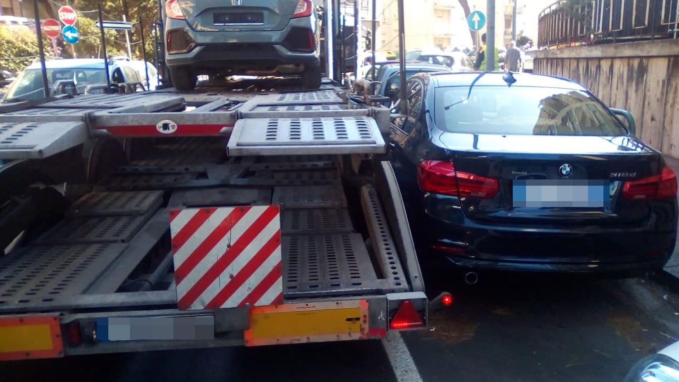 Traffico in tilt questa mattina (dopo le ore 12.30) a Messina in viale Regina Elena, in prossimità della curva dove un tempo vi era la Sede del C.U.S.! Nella zona una bisarca (condotta da un cittadino straniero) di colore blu transitante nella carreggiata Nord-Sud, ha investito una BMW regolarmente parcheggiata.
