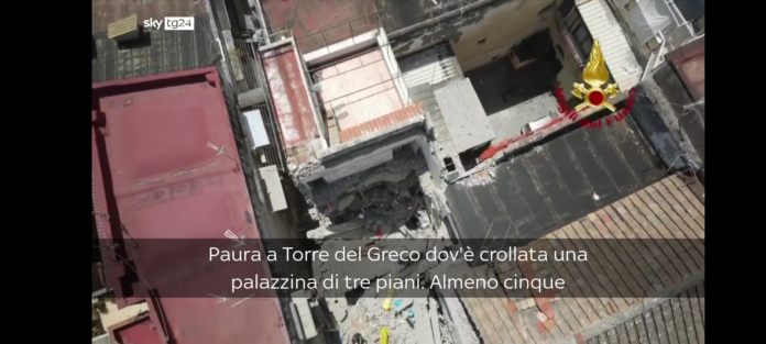 Una palazzina di tre piani è crollata a Torre del Greco, in provincia di Napoli