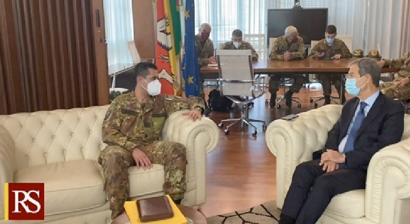 Per implementare la campagna vaccinale anti-Covid, in Sicilia arriveranno ulteriori 1350 professionisti della sanità. È la nuova dotazione organica messa a disposizione dalla Struttura commissariale nazionale, guidata dal generale Francesco Figliuolo, in vista dell’incremento della fornitura di vaccini e tenuto conto della capacità della Sicilia nelle somministrazioni. Proprio in occasione della visita (nella foto) nell’Isola del commissario per l’emergenza, lo scorso 27 marzo, il presidente della Regione Nello Musumeci aveva chiesto al generale Figliuolo di valutare l’opportunità di poter incrementare la capacità di inoculazione dei vaccini mediante il coinvolgimento di altro personale sanitario reclutato direttamente da Roma.