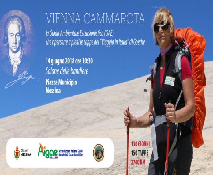 Vienna Cammarota (la Guida Ambientale Escursionistica AIGAE), è la prima donna al mondo che all’età di 68 anni ha deciso di ripercorrere interamente tutto il Viaggio fatto dallo scrittore tedesco Wolfgang Goethe, dunque in questo contesto non poteva mancare una tappa fondamentale come la Sicilia.
