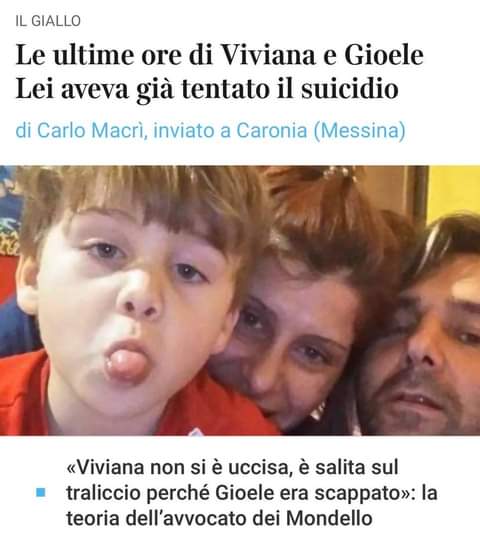 A riferirlo oggi sul suo spazio on line, è stato il giornalista della Rai, Salvo Sottile: «Viviana Parisi aveva tentato il suicidio a fine giugno scorso. Il 3 agosto la donna voleva riprovarci, questa volta portandosi dietro il piccolo Gioele. Al marito Daniele Mondello aveva detto che si sarebbe diretta a Milazzo per acquistare le scarpe al bambino. Voleva invece raggiungere un viadotto dell’autostrada Messina-Palermo, il più lontano possibile, per buttarsi giù insieme al figlio di quattro anni. Il telefono lasciato a casa è stata una mossa studiata per evitare di essere localizzata. L’incidente autostradale in galleria poi le ha fatto cambiare i piani».