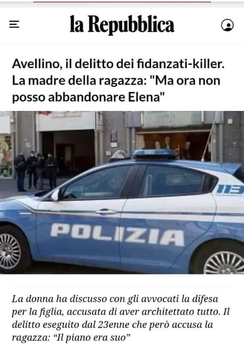 - Una madre disperata ma che non accetta l’idea che la figlia, Elena ,avesse immaginato di sterminare la sua famiglia. «Ora non posso abbandonarla», dice alla stampa, nonostante suo marito Aldo è stato ucciso a coltellate mentre dormiva sul divano di casa, per mano proprio di sua figlia e del fidanzato;