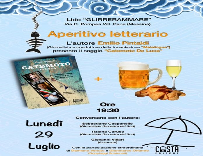 “Catemoto De Luca”, il saggio del giornalista Emilio Pintaldi, sbarca sulla spiaggia. Domani, lunedì 29 luglio, alle 19.30 presentazione al lido “Gli Irrera a Mare” di Contemplazione a Messina. Così, il sindaco De Luca, apparso tra gli ombrelloni nei giorni scorsi assieme ai vigili per i controlli amministrativi, si ripresenterà ma sulle pagine di un libro. “Catemoto De Luca” la comunicazione 3.0 del sindaco social di Messina, analizza a tutto tondo i nuovi metodi comunicativi dei cosiddetti post-politici: da Salvini a De Luca.