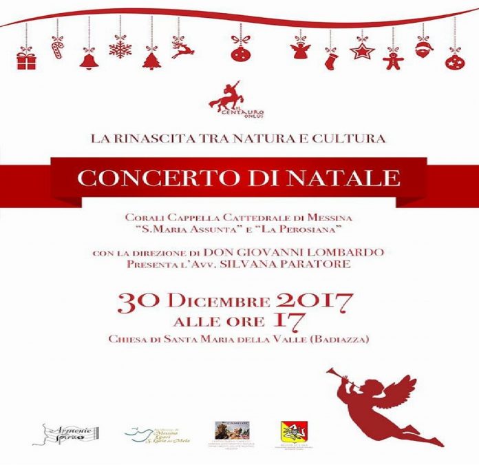Giorno 30 dicembre alle ore 17 alla Chiesa di Santa Maria della Valle (Badiazza), si terrà il Concerto di Natale promosso dalL’Associazione “Centauro Onlus” col patrocinio gratuito del comune di Messina e della soprintendenza ai beni culturali di Messina.