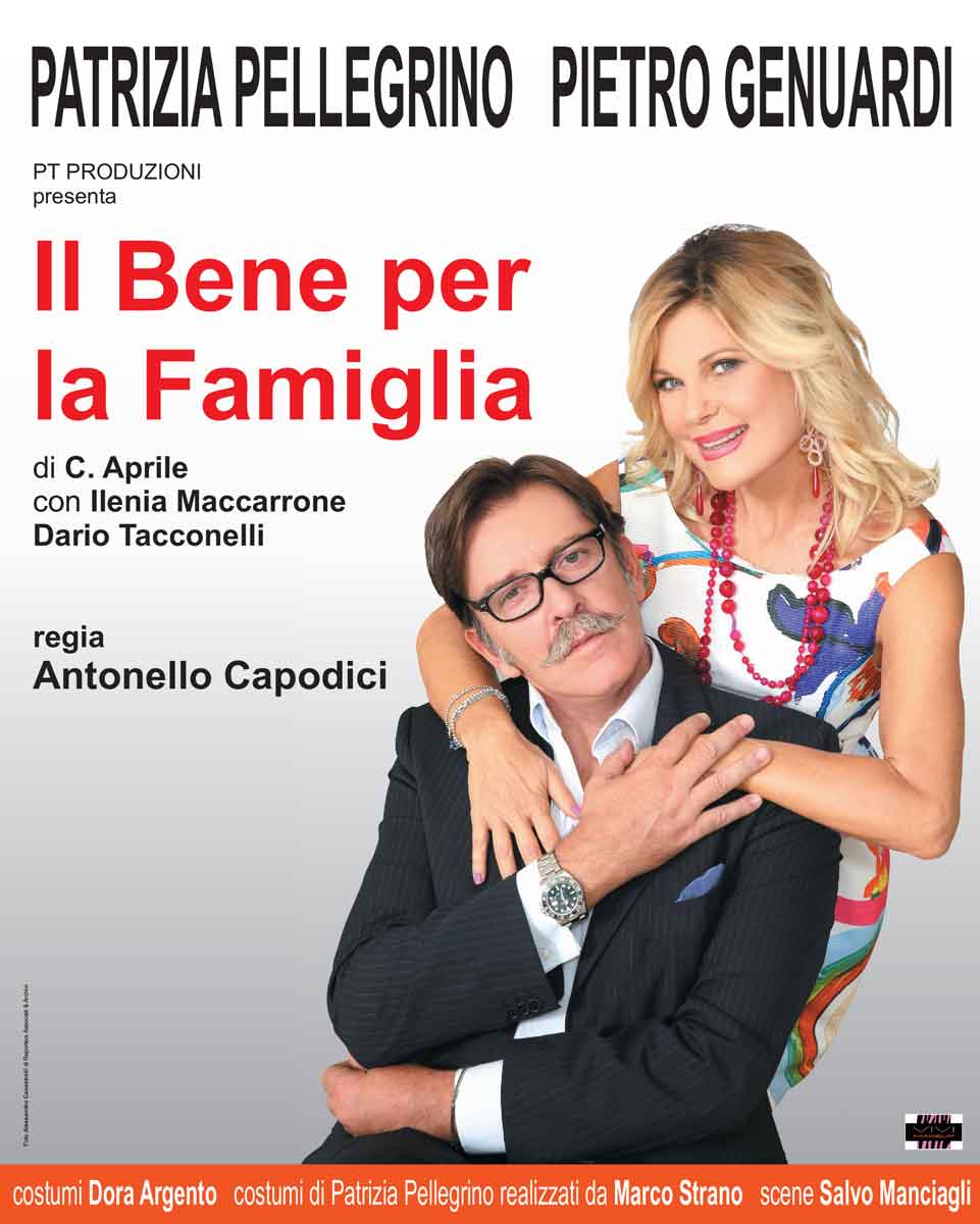 In scena “IL BENE PER LA FAMIGLIA” , di cui ANTONELLO CAPODICI firma la regia. Una grande città, una coppia fortunata: lei creativa di successo, lui cardiologo stimato. Una bella casa, un figlio che frequenta un’università prestigiosa. Fino all’arrivo di una ragazza giovane e bella che scardinerà in maniera inaspettata l’equilibrio della famiglia. E’ questa la trama della piece che vede protagonista Patrizia Pellegrino con Pietro Genuardi, Ilenia Maccarrone e Dario Eros Tacconelli.