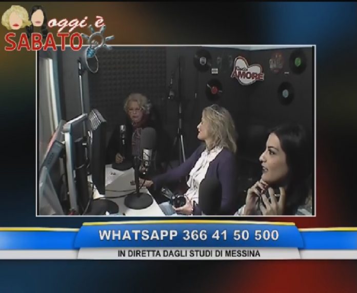 Su Radio Amore, area: Messina – Reggio Calabria – Messina e Provincia Jonica, R. Calabria e V.S. Giovanni… FM 105.800 Mhz Messina Provincia tirrenica da San Saba a Patti… FM 97.100 Mhz – FM 98.200 Mhz; Nebrodi… FM 95.900 Mhz – Da Capo dì’Orlando a Cefalù… FM 104.500 Mhz: “Oggi è sabato. Il programma condotto da Carla Luvarà, con Francesca Lombardo. Quiz con tanti premi, ospiti e allegria… per un sabato spensierato insieme. Ospite in studio la dottoressa Anna Brigandì”.