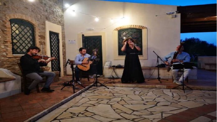 Un viaggio nel magico mondo del tango alla scoperta di un genere antico, che ha fatto il giro del mondo cambiando forma, ed arricchendosi di suggestioni sempre nuove. Un viaggio partito dalle sonorità dei caffè del quartiere di San Telmo a Buenos Aires e giunto fino alle coste siciliane, con l’omaggio alla musica di Rosa Balistreri, cantautrice siciliana che ha portato la nostra musica nel mondo. Un viaggio che passa attraverso i grandi classici come “Oblivion”, famosissimo tango di Piazzolla, per giungere alle sonorità di un vals peruviano reso famoso dall’indimenticabile voce di Edith Piaf. Un mix straordinario, una sonorità struggente che sposata alla bellezza dei luoghi ha incantato il variegato pubblico, molti i giovani presenti, che hanno raggiunto la tenuta Rasocolmo, dove il Trio, sempre insieme ad Elisa Lorena, tornerà ad esibirsi a fine agosto, visto lo straordinario successo di ieri.