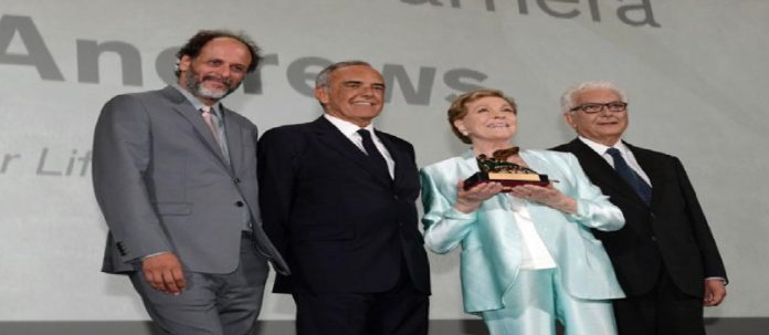 Lo scrivono, sul sito internet della Rassegna veneziana, sul Cinema in programma al Lido della cittadina capoluogo: “il Leone d’Oro alla carriera della 76^ Mostra Internazionale d’Arte Cinematografica è stato attribuito alla grande attrice inglese Julie Andrews, protagonista – tra i suoi numerosi successi internazionali – di classici amati in tutto il mondo quali Mary Poppins (1964), Tutti insieme appassionatamente (1965) e Victor Victoria (1982). La decisione è stata presa dal Cda della Biennale di Venezia presieduto da Paolo Baratta, che ha fatto propria la proposta del Direttore della Mostra Alberto Barbera”.