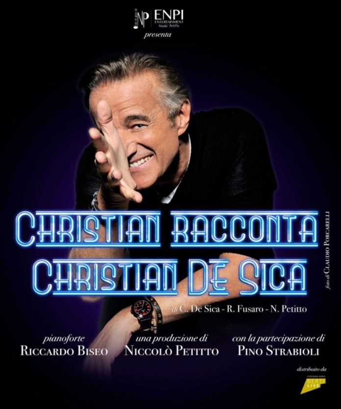 Si tratta di un evento, prodotto da Niccolò Petitto, è scritto da Christian De Sica, che ne cura anche la regia, e da Raffaello Fusaro. Nel corso dell’opera, emerge il suo talento raro, ciò gli consente di passare con leggerezza dal racconto del curioso incontro con un’attempata Wanda Osiris, al ricordo del liceo con Carlo Verdone, alternando con la sua splendida voce interpretazioni di pezzi swing italiani e stranieri con le intramontabili note di Sinatra. Accompagnato al pianoforte dal Maestro Riccardo Biseo, Christian racconta De Sica emozionando, cantando, divertendo ed entusiasmando. “Christian racconta Christian De Sica” è distribuito da Berti Live in collaborazione con Concerto Music ed è organizzato in Sicilia da Show Biz.