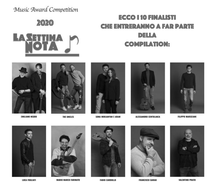 Fabio Cardullo, Mario Marco Farinato, Emiliano Negro con Bob Morelli, The Uncles, Aram & Sona, Alessandro Centolanza, Filippo Marsciani, Valentino Prato, Francis-Q (ovvero Francesco Garau), Luca Fogliati: ecco i protagonisti della prima compilation de “LA SETTIMA NOTA 2020”, tratti dalla rassegna omonima dedicata alla musica d’autore, ideata e prodotta dalla label milanese LONG DIGITAL PLAYING SRLS EDIZIONI MUSICALI.
