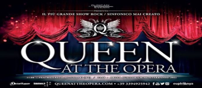 Il tour italiano di Queen At The Opera fa una doppia tappa in Sicilia nelle splendide cornici del Teatro Greco di Tindari (Messina), domenica 11 agosto e all’Arena Auditorium Mediterraneo di Marina di Modica (Ragusa) martedì 13 agosto (inizio alle ore 21.00). Il primo e unico concerto/show interamente basato sulle musiche dei Queen in una inedita e coinvolgente veste rock sinfonica mai creata prima. Da un’idea della Duncan Eventi, lo spettacolo ha riscosso successo in Italia, grazie alla presenza sul palco di oltre 40 straordinari musicisti: con Queen At The Opera il pubblico ha la possibilità di ascoltare i grandi classici dei Queen e rivivere emozioni uniche attraverso brani che hanno fatto la storia della musica mondiale.