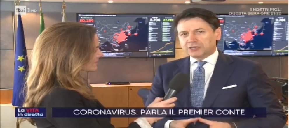 Nel corso del programma La Vita in diretta (condotto da Alberto Matano e Lorella Cuccarini dal lunedi’ al vrnerdi’ dalle ore 16.50 alle 18.30), oggi pomeriggio su Rai1 la giornalista Ilenia Pietracalvina ha intervistato il premier Giuseppe Conte.