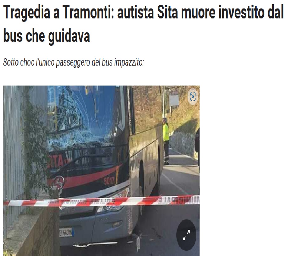 Terribile tragedia nel primo pomeriggio del 23 dicembre 2022…, a Tramonti dove ha perso la vita un autista della Sita investito dal bus che poco prima aveva parcheggiato a bordo strada.