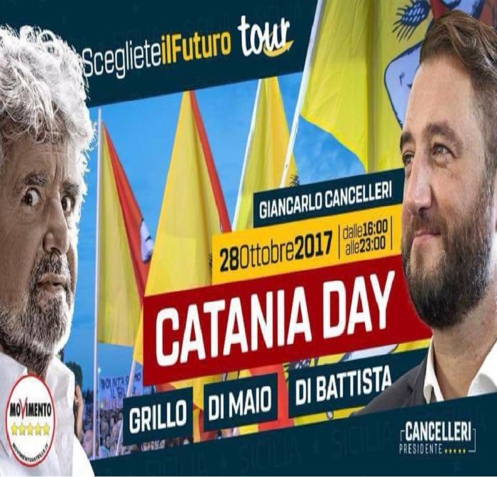 Il MoVimento Cinque Stelle di etneo, in previsione della odierna giornata in cui ci saranno tutti i maggiori rappresentanti del sodalizio pentastellato in città, ivi compreso il fondatore, evidenziano quanto segue: “cari cittadini ci siamo ! Il grande giorno sta per arrivare. Ti invitiamo a partecipare sabato 28 ottobre al #Cataniaday. Un’intera giornata a 5 Stelle da non perdere assolutamente. Passaparola e invita gli amici perché per questa giornata indimenticabile arriveranno a Catania Beppe Grillo, Giancarlo Cancelleri, Alessandro Di Battista, Luigi Di Maio e tantissimi portavoce nazionali ed europei”.
