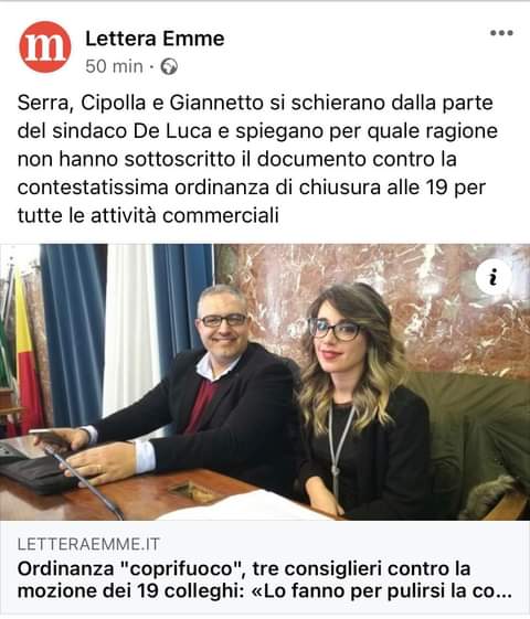 La Giannetto ha aggiunto: “non ci convince perché ad esempio che senso ha posticipare SOLO di mezz’ora la chiusura dei negozi rispetto l’ordinanza? non si è parlato di scuola, si parla di zone rosse della città a macchia di leopardo (continuiamo con la confusione) e ancora abbiamo sottolineato come siamo x l’asporto fino alle 22 (non come previsto dall’ordinanza del sindaco)”.