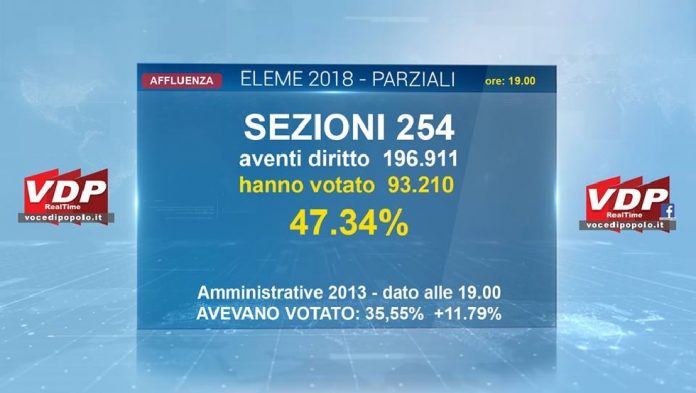 Complessivamente a dodici ore di distanza, dall’apertura delle sedi elettorali allocate nelle scuole predisposte a ciò, si sono recate presso queste 93.210 persone.