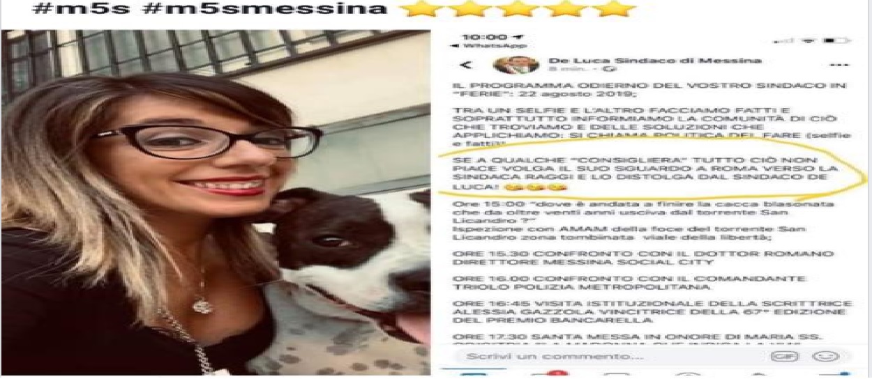 L’ulteriore risposta del sindaco di Messina, Cateno De Luca alla consigliera dei Cinque Stelle, Giannetto: “cara Serena…! Sono lusingato delle Sue attenzioni e comprendo il suo imbarazzo nell’evitare di mettere a confronto un anno di vero governo di Messina con altre esperienze a 5 stalle di lungo periodo. Continui pure a -pettinar le bambole- le ho dato confidenza in questa circostanza (non succederà più !) per evidenziare l’ulteriore cantonata che ha preso in merito alle FELUCHE. Mi è bastato quanto affermato da Antonella Donato (rappresentate di tutte le feluche) per smascherare l’ulteriore velo di ipocrisia che non ci appartiene finalizzato ad appropriarsi del lungimirante lavoro svolto dal nostro assessore Carlotta Previti. Lei continui così noi continuiamo per la nostra strada”.