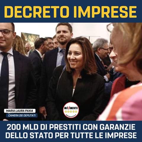 “Continua, incessante, l’azione del nostro Governo per supportare e stare accanto agli imprenditori del nostro Paese in questo momento così delicato”. E’ questo il pensiero scritto oggi su Facebook dalla deputata nazionale catanese dei 5 Stelle, Maria Laura Paxia.