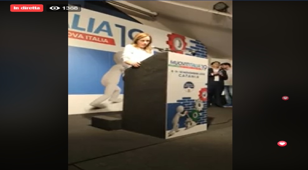 Da Catania, la diretta su Facebook, della manifestazione MUOVITITALIA 2019. In questo contesto, vi è l’intervento odierno, della leader di Fratelli d’Italia Giorgia Meloni.