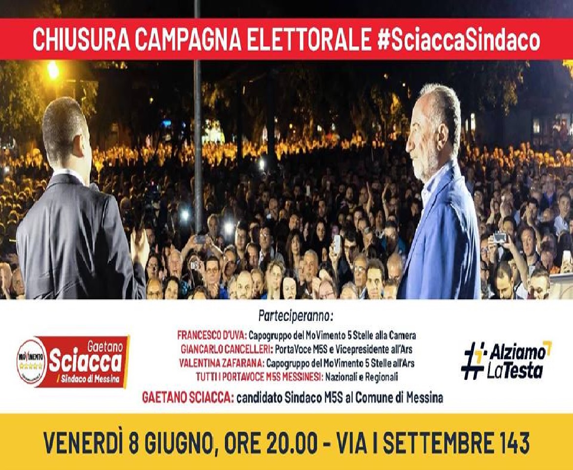 Gaetano Sciacca, il candidato a sindaco di Messina, pentastellato, concluderà la sua propaganda ed in un post sulla propria pagina Facebook, scrive: “cari concittadini siamo alle battute finali di questa splendida campagna elettorale”.