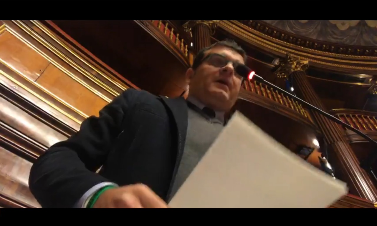 Il senatore della Lega Gian Marco Centinaio, interviene in aula motivando il voto contrario del suo Gruppo alla Legge sul biotestamento che si stà discutendo a Palazzo Madama.