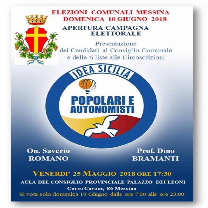 Venerdì 25 maggio alle ore 17.30 nell’Aula Consiliare della ex Provincia Regionale, si svolgerà la prima manifestazione politica della nostra lista con la presentazione dei candidati al Consiglio Comunale di Messina, a sostegno di Bramanti Sindaco e dei candidati ai 6 Quartieri.