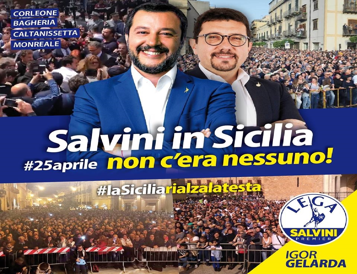 A scriverlo, è Igor Gelarda, consigliere comunale per la Lega a Palermo e candidato alle Elezioni Europee del 26 maggio, nella Circoscrizione che eleggerà i rappresentanti delle Isole: “buongiorno ragazzi, ieri è stata una giornata fantastica! Di pomeriggio saremo a Gela e questa sera a Mazara del Vallo”.