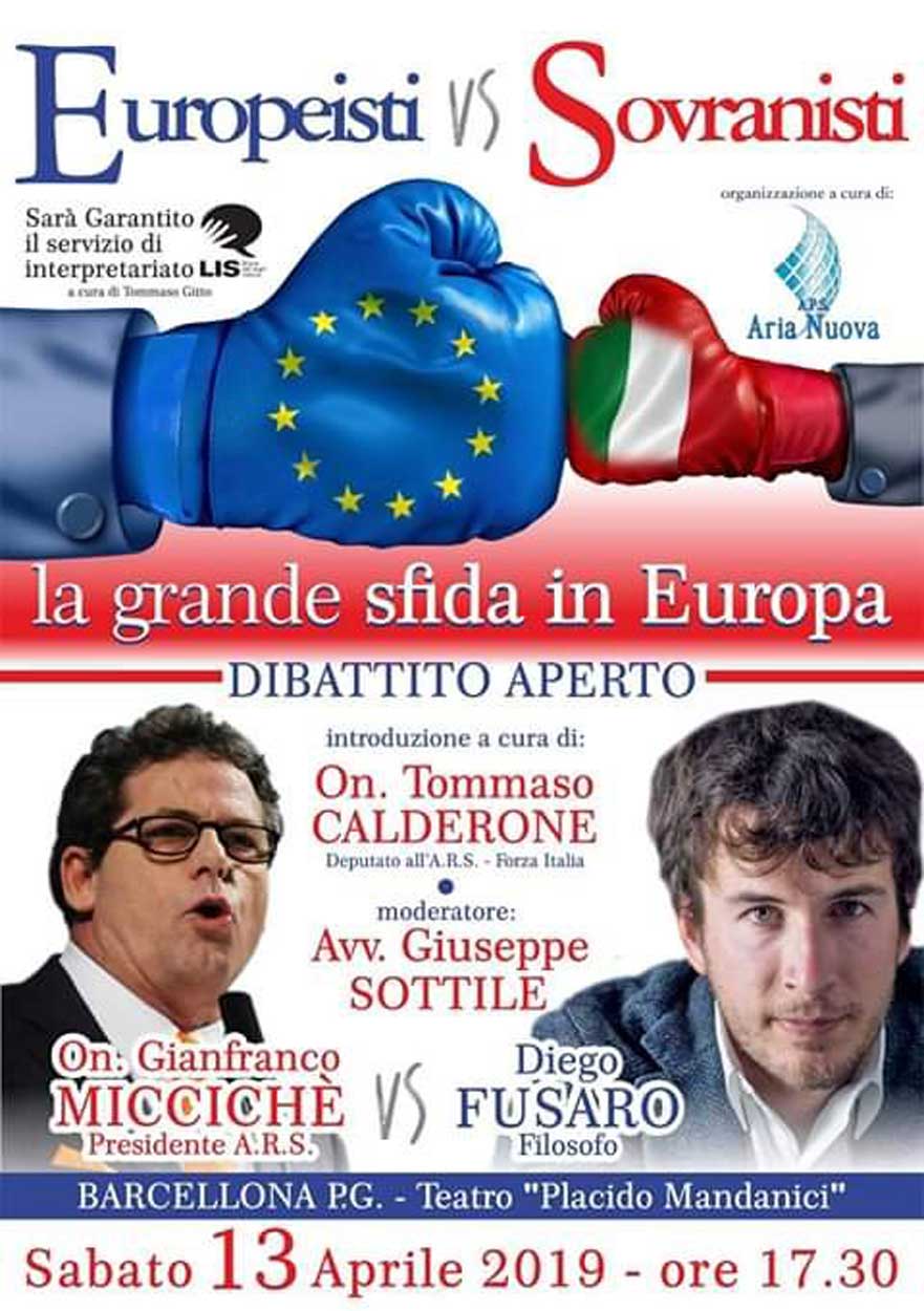 Si terrà oggi, 13 aprile alle ore 17.30 presso il Teatro Mandanici di Barcellona Pozzo di Gotto, il confronto tra europeisti e sovranisti.