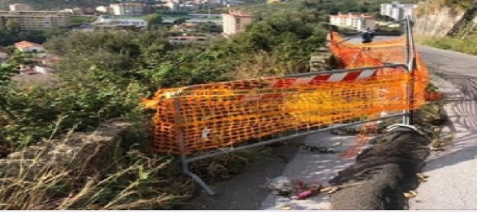 Prosegue il consigliere: “tra l’altro, la carreggiata, costringe le autovetture che vanno in direzione Bisconte a spostarsi verso il centro della strada, con i consequenziali rischi di impatto che si hanno, appunto, con i mezzi che invece, procedendo nella direzione opposta, sono costretti anch’essi a spostarsi verso il centro per evitare l’ostacolo delle transenne del punto crollato”.