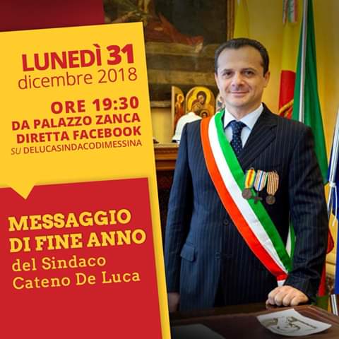 31 dicembre 2018 – Collegati con la pagina Facebook ufficiale, del primo cittadino di Messina, Cateno De Luca, diffondiamo il suo messaggio di fine anno.