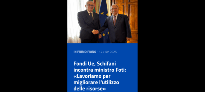 Il presidente della Regione Siciliana, Renato Schifani, in qualità di coordinatore della Commissione Affari europei ed internazionali della Conferenza delle Regioni, ha incontrato oggi a Roma il ministro degli Affari europei e delle Politiche di coesione, Tommaso Foti. Durante la visita, Schifani ha anticipato alcune questioni prioritarie che saranno discusse nella prossima Conferenza delle Regioni.