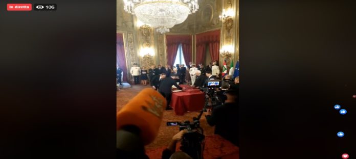 In diretta dal Quirinale a Roma: la cerimonia di giuramento del Governo Conte bis, trasmessa dalla Agenzia di stampa Vista. I 21 ministri, giurano (innanzi al Capo dello Stato Sergio Mattarella, che li nomina)… assicurando il rispetto della Costituzione Italiana.