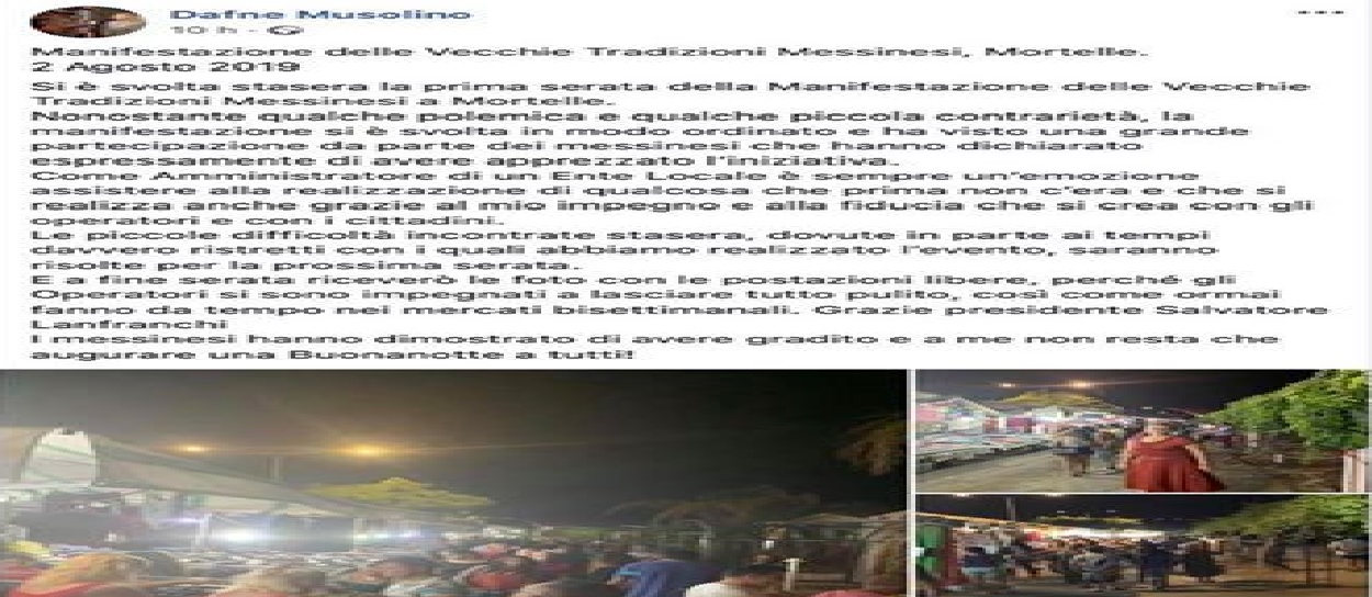 Home Sicilia Magazine Messina “Inaugurata la Manifestazione delle Vecchie Tradizioni Messinesi a Mortelle”, lo dice l’ex...
