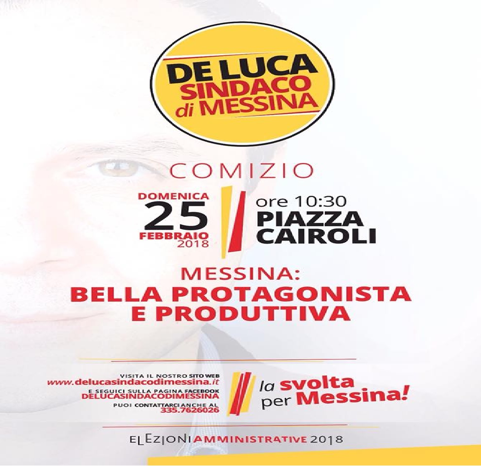 25 febbraio 2018 – La pioggia di questa mattina, non ha fermato l’appuntamento elettorale odierno a piazza Cairoli, che l’onorevole Cateno De Luca (rappresentante di Sicilia Vera a Palermo in seno al Parlamento regionale) ha deciso di dedicare alla città dello Stretto. De Luca, è da tempo in campo quale candidato alla carica di primo cittadino in vista delle elezioni amministrative del prossimo giugno.