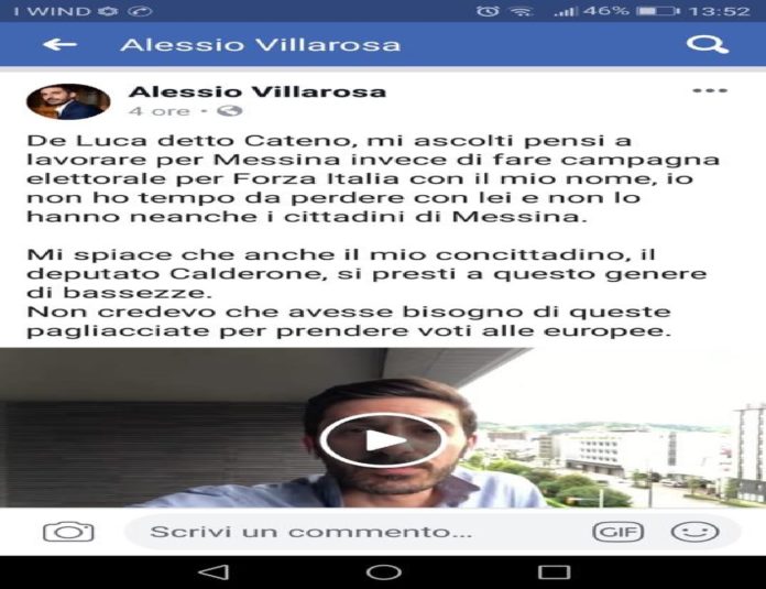 Ed ancora, andando a concludere: “per non farlo affaticare troppo sto andando a casa sua e l’onorevole Tommaso Calderone farà da moderatore mentre il sindaco Eugenio Aliberti farà da garante. Parleremo anche delle leggi di stabilità e di come falliscono le finanziarie non solo quelle dello Stato ma anche quelle a Cinque Stelle. Alessio detto Villarosa ti aspettiamo non fare il coniglio”!