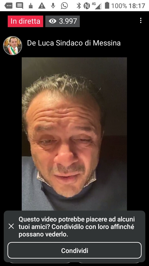 La spiegazione del sindaco di Messina Cateno De Luca, su cio’ che accadra’ da sabato in relazione alle disposizioni sul Covid-19… data in una diretta su Facebook iniziata alle 18.13 e conclusasi alle 18.27 [Video]