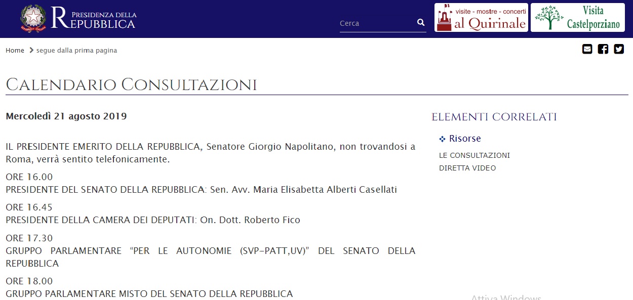 Già avvenute… IL PRESIDENTE EMERITO DELLA REPUBBLICA, Senatore Giorgio Napolitano, non trovandosi a Roma, è stato sentito telefonicamente;