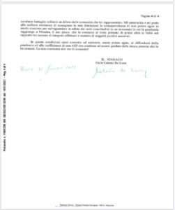 “Io sono un uomo delle Istituzioni, pronto a cambiare mestiere se non riesco a tutelare la mia Comunità o se si sono rivelate inefficaci le mie decisioni! Quanti politici in Italia la pensano ed agiscono come me? In allegato il testo integrale regolarmente protocollato delle mi dimissioni”.